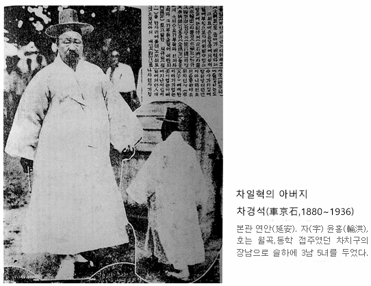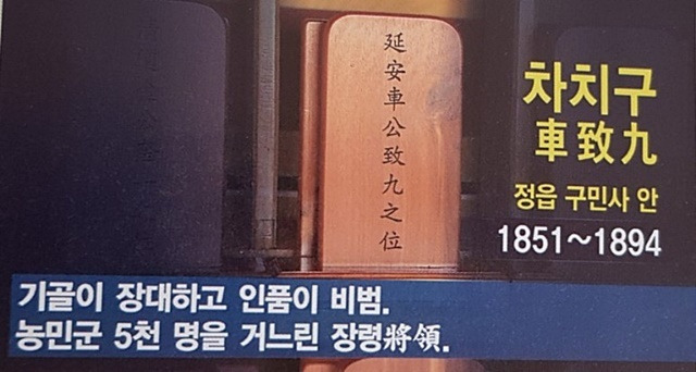 차일혁 경무관의 할아버지 차치구(車致九, 1851-1894)는 농민군 5,000여 명을 이끌고 동학군의 맨 앞에 섰던 인물이다.
