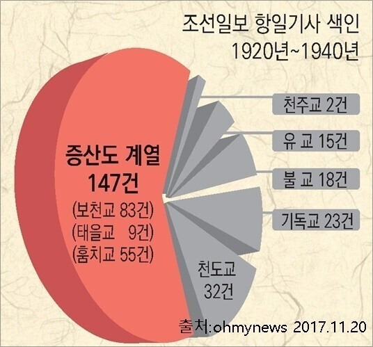 고등법원에서 징역을 받은 사람이 129명이나 되었다. 당시 전국에서 검거된 보천교 신도가 3만여 명에 이르렀다." (출처:강영한 상생문화연구소 연구원, 일제의 보천교 탄압과 해체)