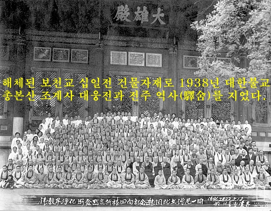 해체한 보천교 본소 십일전의 자재들은 서울 조계사에 보내고, 보천교 청기와는 청와대의 전신, 경무대에로 보낸다. 완전히 보천교 흔적을 지워버린 것이다.1936년 보천교 해체와 더불어 조선인을 일제 황국신민으로 만들자는 심전개발운동(心田開發運動)이 이때부터 본격화되었다. 조선민중을 일제와 친일세력들의 노리개로 만들겠다는 정책이었다.